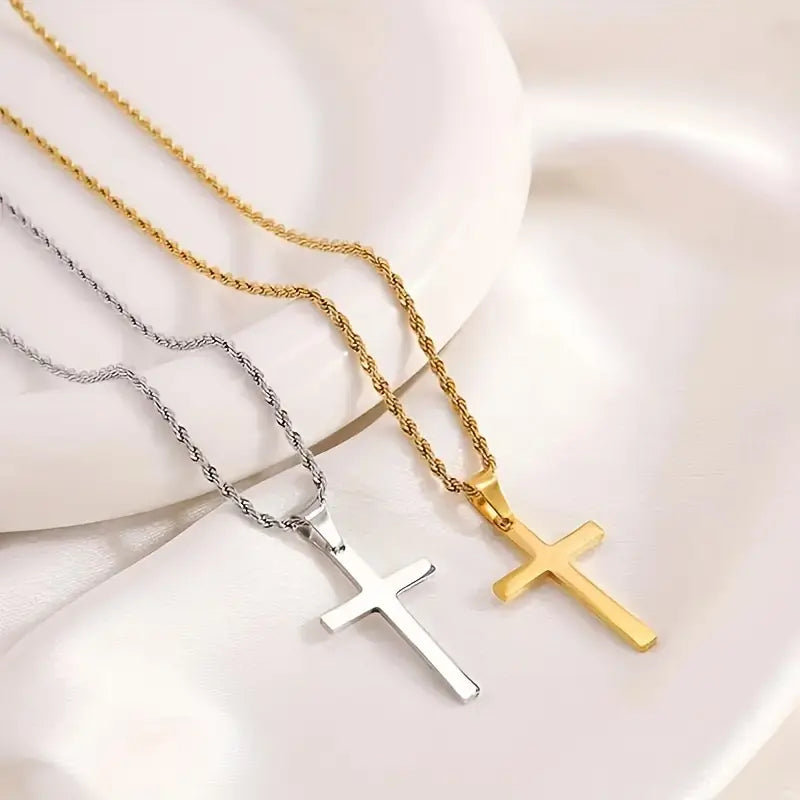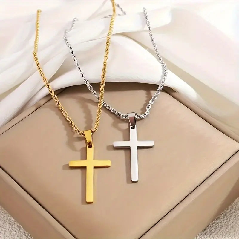- Design: Elegante Kordelkette mit einem klassischen Kreuzanhänger, der religiöse Symbolik mit modernem Stil verbindet.